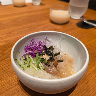 Acorn Jelly and Beef Tendon Salad in Icy Kimchi Broth